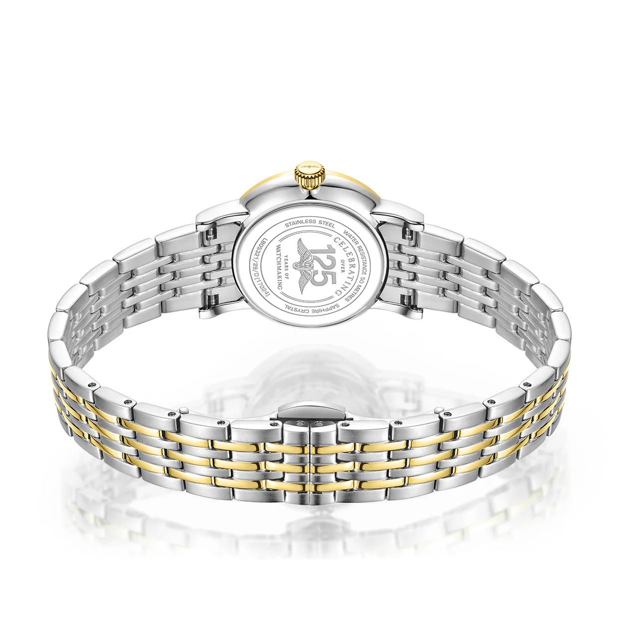 Meticulously designed with a two-tone PVDĀ stainless steel 27mm case and two-tone PVD bracelet, this Rotary Dress timepiece exudes sophistication. TheĀ durableĀ sapphire glass protects a stepped diamond texture dial featuring gold appliedĀ stick and diamond indices adding a touch of timeless elegance. The brushed and polished finishing of the case further enhances its refined look.