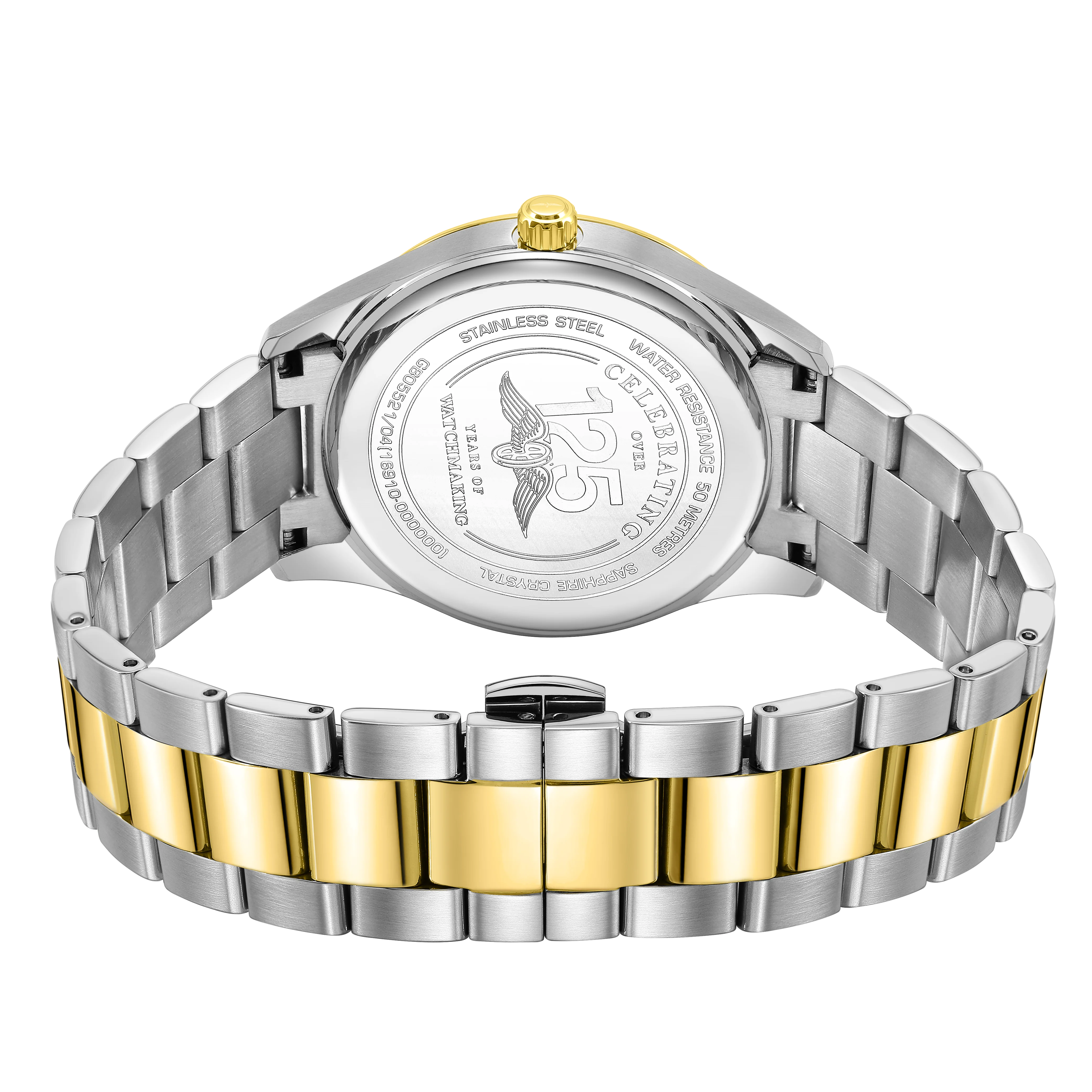 Featuring a 40mm two-tone gold PVD stainless steel case, clean black dial with gold accenting and stainless steel two-tone gold PVD bracelet, this Rotary Heritage delivers timeless class. 50m of water resistance and a date at 6 add practicality to this premium design.