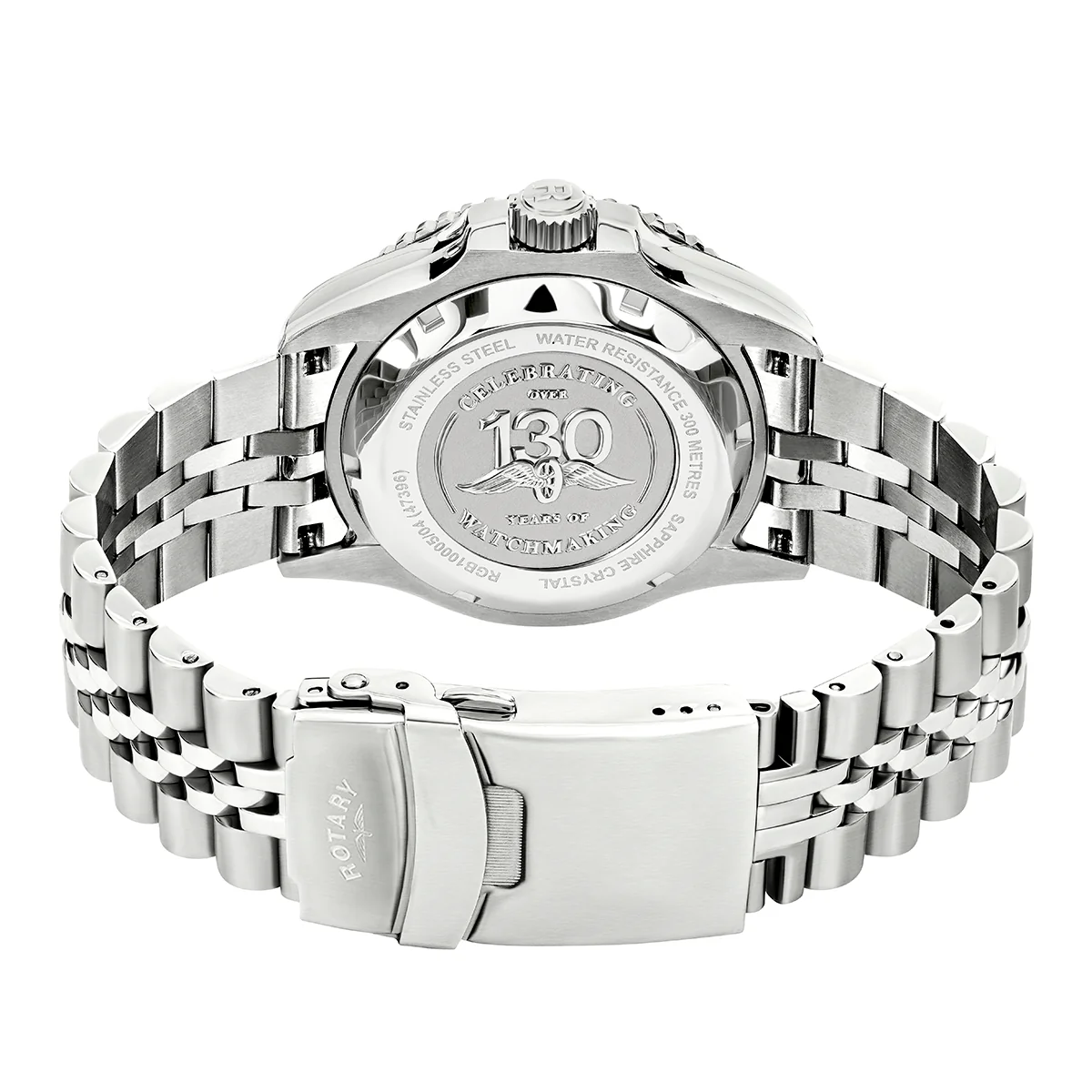 The Rotary Seamatic 300 GMT, a dive watch designed for the international adventurer. Combining rugged functionality with a sleek, modern design, the Rotary Seamatic is built to accompany you on travels to underwater explorations and beyond. Its 316L stainless steel case and a polished stainless steel jubilee bracelet ensure lasting durability, while the subtle two tone blue bi-directional GMT bezel offers both style and utility. The deep blue dial is designed for maximum legibility, featuring an automatic GMT movement that adds a versatile complication for travellers.